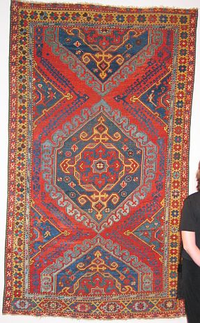 My wife and I attended this lecture and visited the gallery to see this exhibition. Dennis arranged with the Gallery folks for me to take photos of the rugs in this exhibition. Sara Stewart, a member of the Gallery staff who handles promotion, has provided me with an electronic copy of the gallery labels of the rugs in the exhibition. Dennis wrote the text for these labels.