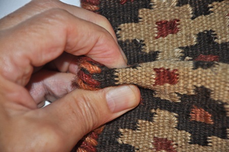 starting end of a kilim (either type) and as the weaver develops a rhythm