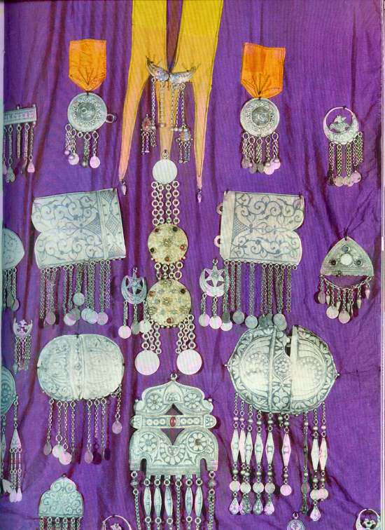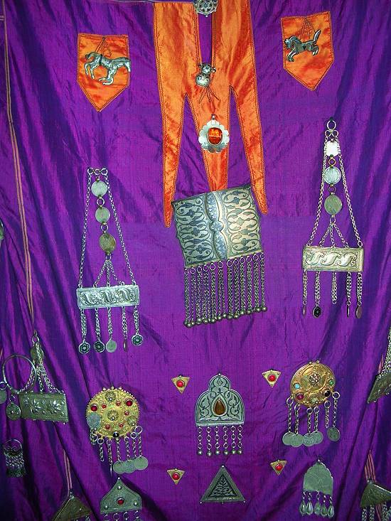 I like the "dress." The jewelry resembles some Turkmen pieces.