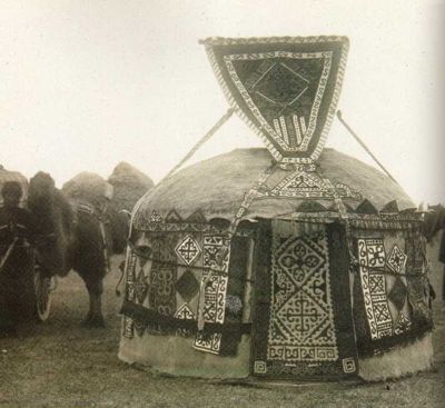 Nogaian wedding-yurt shows decorations in a very central Asian style. No wonder: