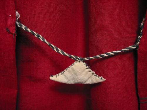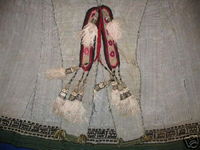 I have a turkmen dress with non functional sleeves. These sleeves are closed and attached in the back with threads joining a tiny triangular material bag in which there are, I suppose, some magical herbs.