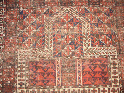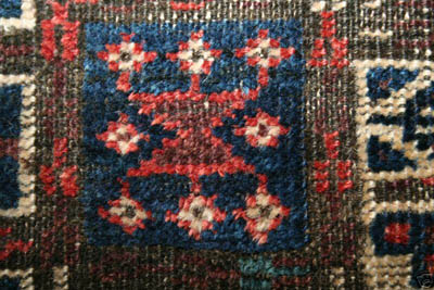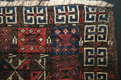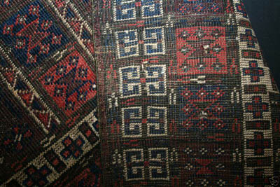 knot open to the left. General color scheme more beloutch than turkmen. Special