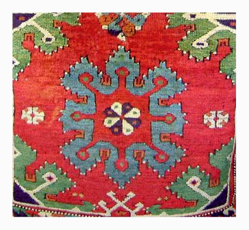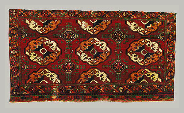 medallions are supported by smaller Turkic medallions that reflect Turkmen guls.
