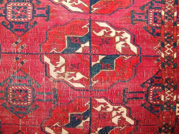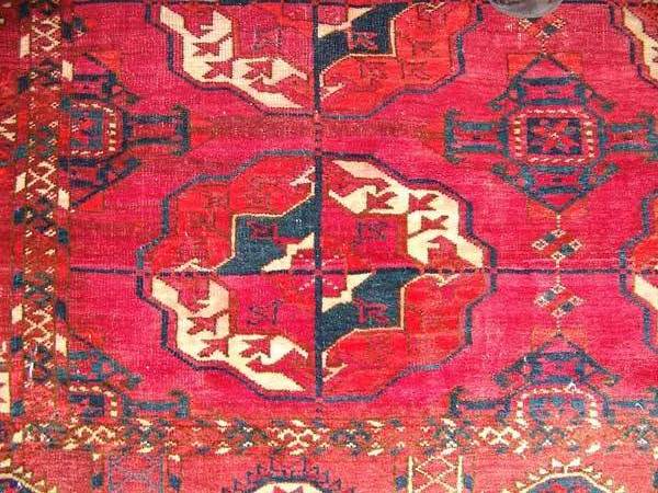 colours like fuchsine would earliest be found in Turkmen rugs around 1860, and