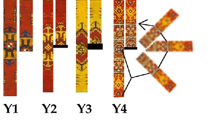 at each end of rug#2, all of the design elements of the