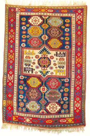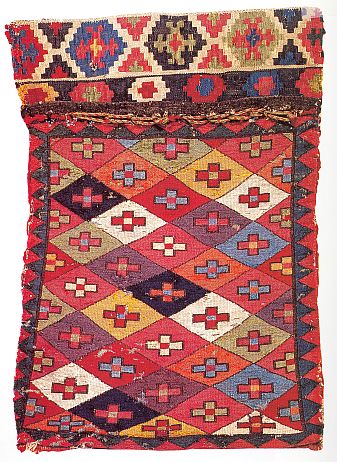 This is a “Moghan-Savalan” saddle bag half from John Wertime’s “Sumak Bags” book that seems to me to exhibit color harmony at its near acme. There are quite a few colors. They are placed in various combinations and proximities to each other and everything seems to “go together.” Despite that fact that the colors in this piece are pretty deeply saturated, none of them calls special attention to itself.